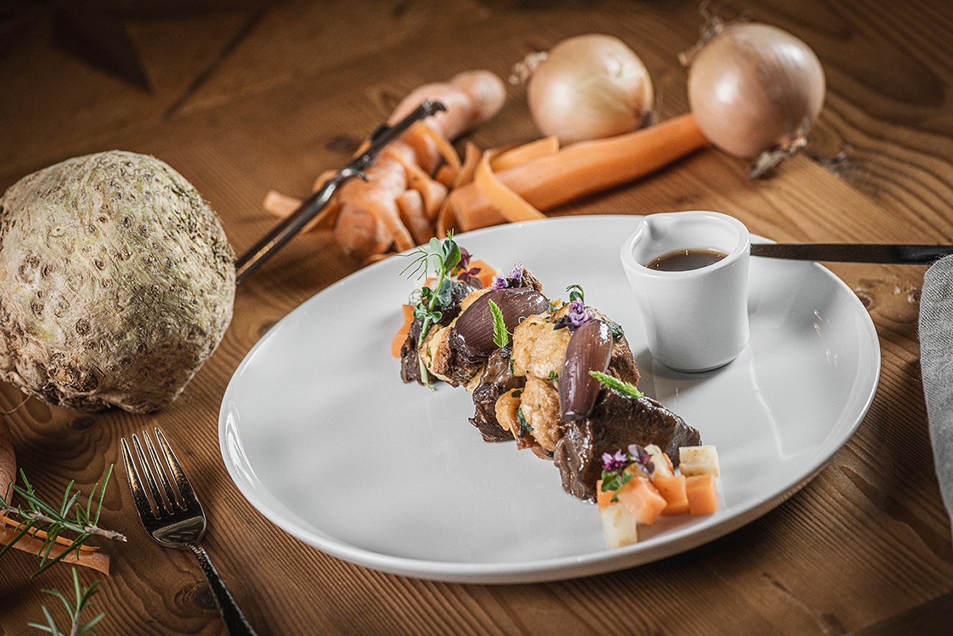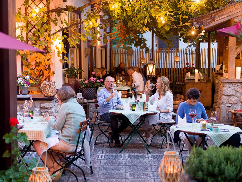 Den Inn zu Füßen, die Berge vor Augen: Welch Ambiente! Doch nicht nur das Auge, auch der Gaumen wird in diesem über 600 Jahre alten Haus verwöhnt: mit 5-Gang-Gourmetmenü im kleinsten Brückenrestaurant der Welt, saftigen Steaks („Bestes Steakhouse in Tirol“), edlen Tropfen aus dem gut bestückten Weinkeller oder dem „Stollen 1930“, der hauseigenen Gin-Bar. Plus: Café „Franz Josef“ mit täglichem Frühstücksangebot, Sonnenterrasse am Inn und hübsches Boutiquehotel.