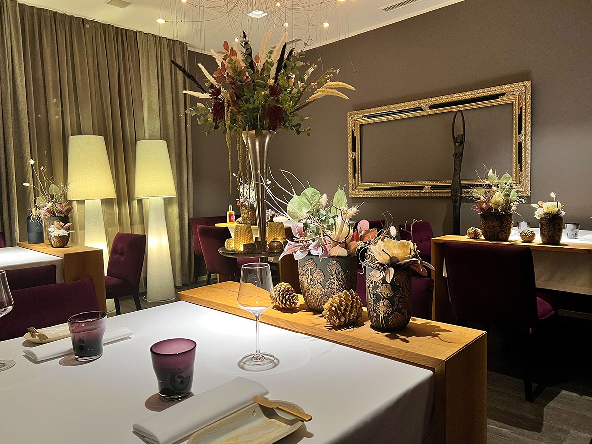 Man fühlt sich sofort willkommen, dazu trägt die ganze Familie Rainer mit viel Engagement und Leidenschaft bei. Wir starten mit einem Wein aus vier alten steirischen Apfelsorten, passend zur Eierschwammerlsulz mit Zuckererbsenschoten, Pistazien und Pilzdressing. Auch die Sellerieschaumsuppe mit Selleriecreme und Selleriestaub weiß zu verzaubern, ebenso das Rote-Rüben-Risotto mit geschmorter Roter Rübe und Schafkäse. Außergewöhnliche Weinbegleitung.