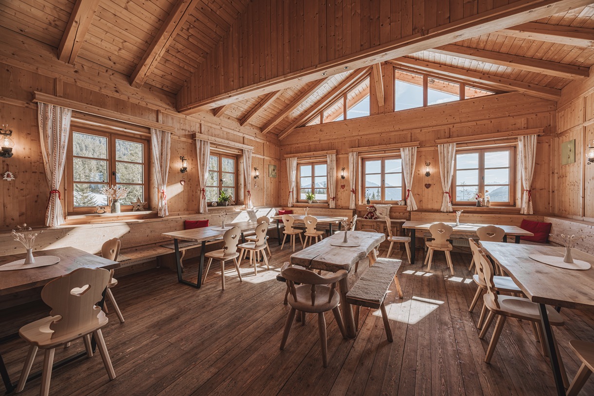„Griass enk auf der Hämmermoos!“ Mit viel Herz, glühender Gastfreundschaft und ausgeprägtem Sinn für Nachhaltigkeit und Umweltschutz betreibt das Ehepaar Wandl in der Region Seefeld neben dem vorbildlichen Biohotel "Leutascherhof" auch die romantisch gelegene „Hämmermoosalm“ auf stolzen 1.417 Metern. Die urig-gemütliche Hütte wird ganzjährig bewirtschaftet – ein wahrer Glücksfall, denn dieses herrliche Platzerl ist zu jeder Saison einen Besuch wert: Vier unterschiedliche Gaststuben, eine großzügige Sonnenterrasse, Liegestühle im Grünen unter ausladenden Sonnenschirmen und ein liebevoll gestalteter Almspielplatz laden die gesamte Familie zum Verweilen und Genießen ein. Samstags und sonntags gibt’s (nach Reservierung) ein gschmackiges Almfrühstück mit Bauernbutter, Wurst und Speck, Brotkorb und allem, was sonst noch dazugehört. Das Freizeitangebot ist sommers wie winters bunt und abwechslungsreich (Wanderwege, Rodelbahn, Biketouren), weshalb sich hier Sportler wie auch Erholungsuchende ganzjährig wohlfühlen. Ein Vorzeigebetrieb!