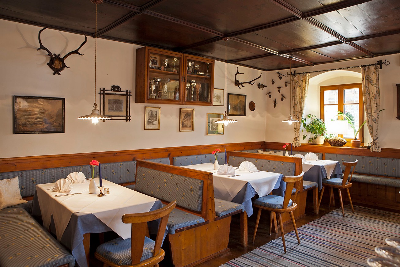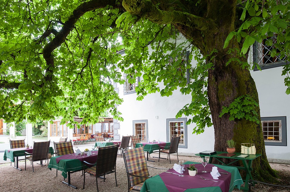 Nach Bad Goisern zu kommen, ohne im schmucken Landhotel vorbeizuschauen, ist undenkbar. Das Haus ist liebevoll geführt, alles wurde akribisch gestaltet – mit restaurierten Fresken, Renaissance-Doppelfenstern, Eingangsportalen aus Altausseer Marmor und einer denkmalgeschützten Kassettendecke in der Gaststube. Im Sommer ist der gepflegte Garten ein absoluter Traum, man sitzt unter alten Obstbäumen und kann herrlich entspannen. Wem der Sinn nach Übernachten steht, der findet im modernen Anbau wunderschöne Komfortzimmer vor. In der Küche lautet das Schlagwort Bio. So gut es geht, wird aus der Region bezogen. Österreichische Gerichte werden neu interpretiert, bekannt ist man auch für viele vegetarische Kreationen und fangfrische heimische Fische wie Saibling, der herrlich kross gebraten und mit Rucolakartoffeln serviert wird. Gezaubert werden Backhendlsalat, Kaspressknödelsuppe oder Bandnudeln mit Räucherlachs und Spinat, den Flammkuchen mit Speck und Zwiebeln sollte man unbedingt probieren. Tolle Weine.
