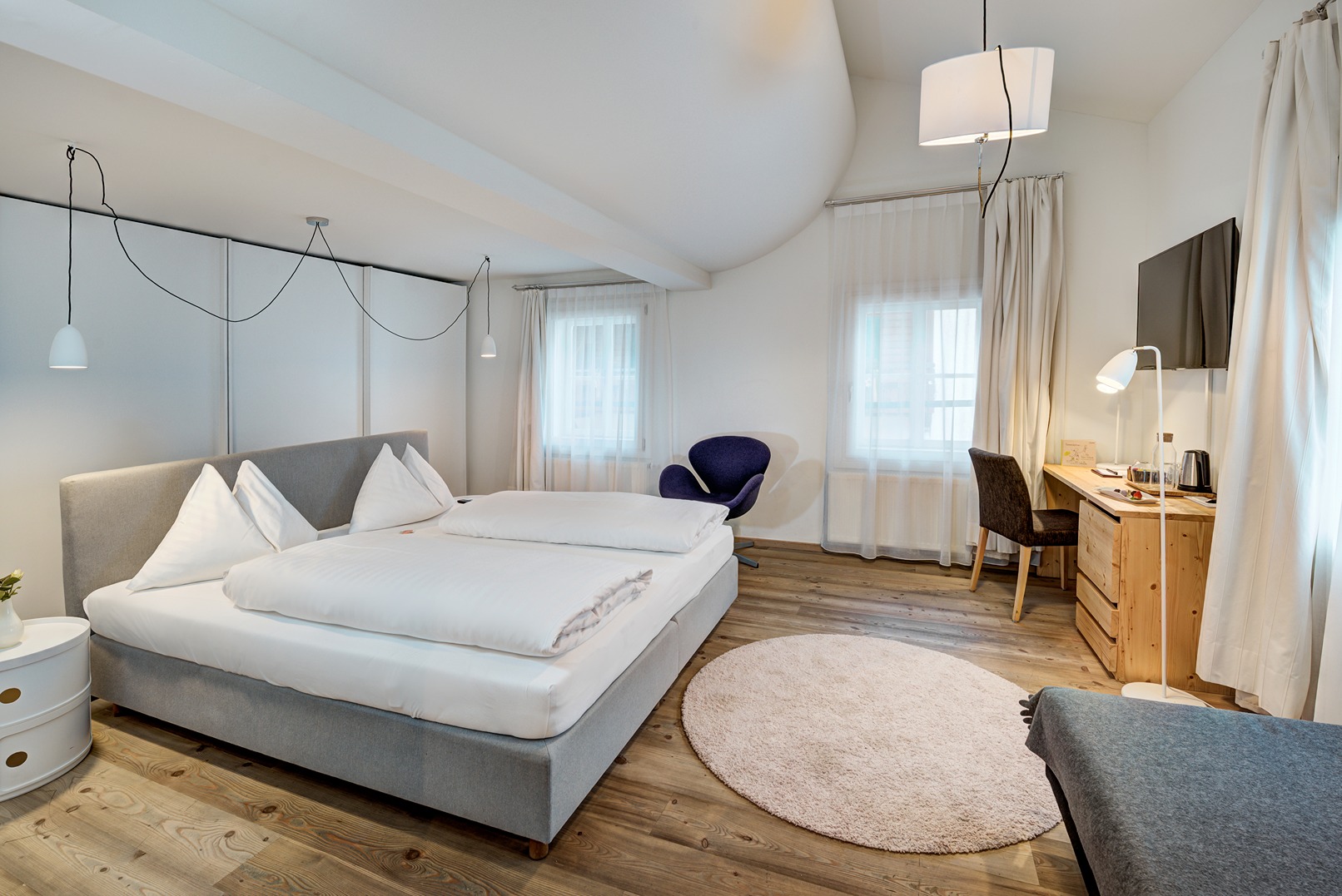 Einen unvergesslichen Urlaub zwischen Bergen und See verspricht das jahrhundertealte Haus im Ortskern, der Mix aus Innovation und modernem Design, gepaart mit Tradition und gemütlicher Gastlichkeit ist ansprechend. Über den Dächern der Stadt laden Whirlpool und Panoramasauna ein, die Zimmer sind geschmackvoll eingerichtet. Julia Haidinger und Simon Schuster sind wunderbare Gastgeber, die sich um das Wohl ihrer Gäste kümmern. Küchenchef Tamas Farkas hat die Küchenlinie ganz auf das Haus zugeschnitten, zu den knarrenden Böden und holzgetäfelten Wänden passen regionale Gerichte und österreichische Klassiker. Man startet mit dem Wiener Suppentopf, für Vegetarier gibt’s Burrata auf Tomaten und Basilikumpesto. Für den großen Hunger empfiehlt sich das Tomahawk-Steak vom Kalb mit Grillgemüse, Wedges und Johannisbeersauce oder Schweinsbraten im Biersaftl. Zum Schluss locken Klassiker wie Kaiserschmarren oder Salzburger Nockerln. Der Gewölbekeller ist einen Besuch wert – nicht nur wegen der spannenden Tropfen, die dort lagern.