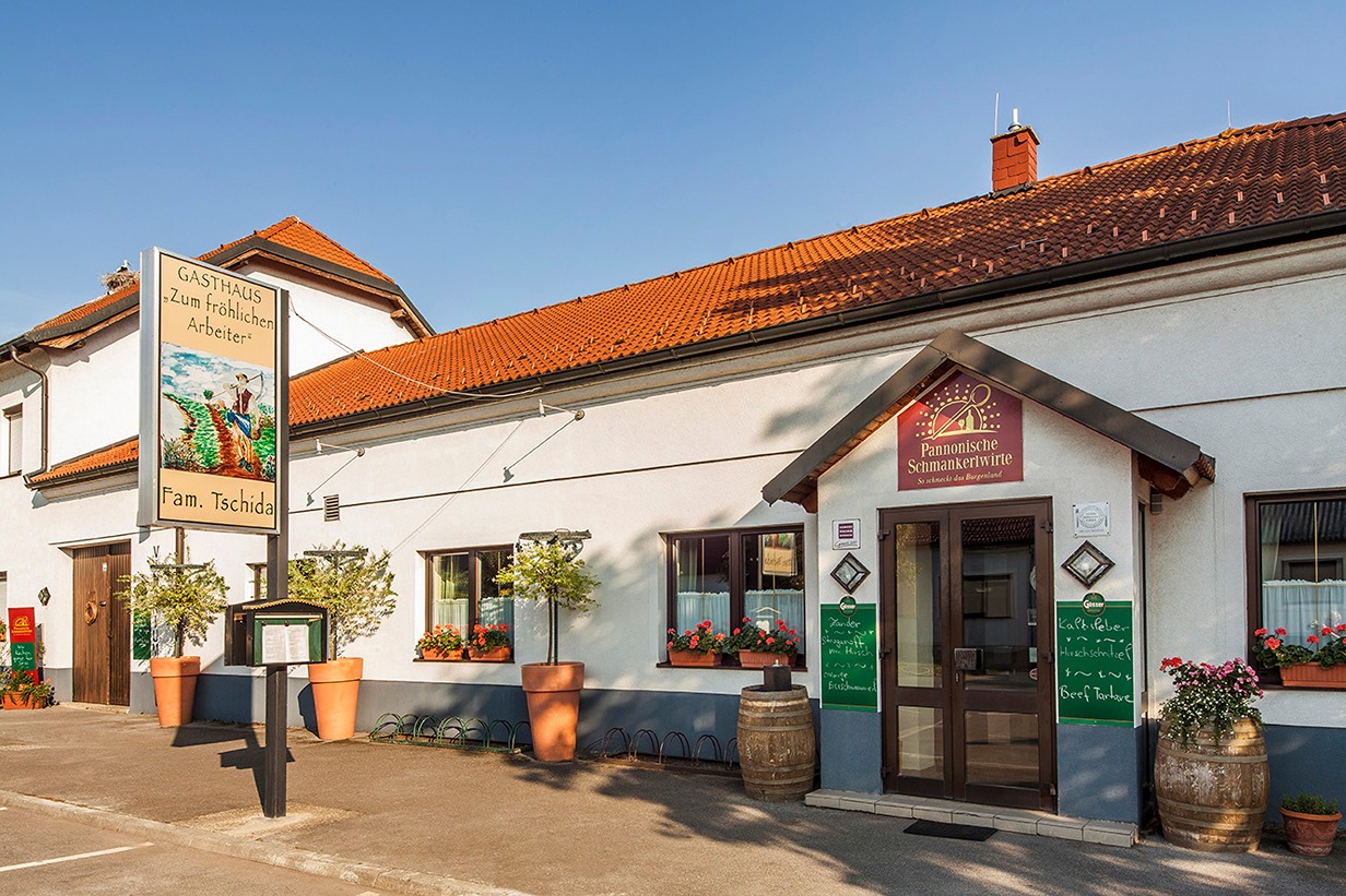 7143 Apetlon, Quergasse 98 • Ruhetag: Jan.–März Di, Mi, Do, April–Dez. Mi, Do • Küchenzeiten: Mo, Di 11.30–14, 18–21 Uhr; Fr 18–21 Uhr; Sa 11.30–21, So 11.30–19 Uhr • Sonntags geöffnet: • +43 2175 22 18 • gasthaus@froehlicherarbeiter.at • www.froehlicherarbeiter.at • Plus: Gastgarten, Kinder willkommen, hundefreundlich • Bahn: Pamhagen 8 km
